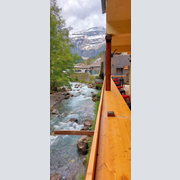 A l'entrée du village de Gavarnie, prenez les escaliers en contrebas de la maison du parc national des Pyrénées & découvrez le balcon sur le gave de Gavarnie & la vue sur le cirque et les sommets environnants ! Entrez dans un lieu chaleureux & convivial, avec des spécialités de montagne.